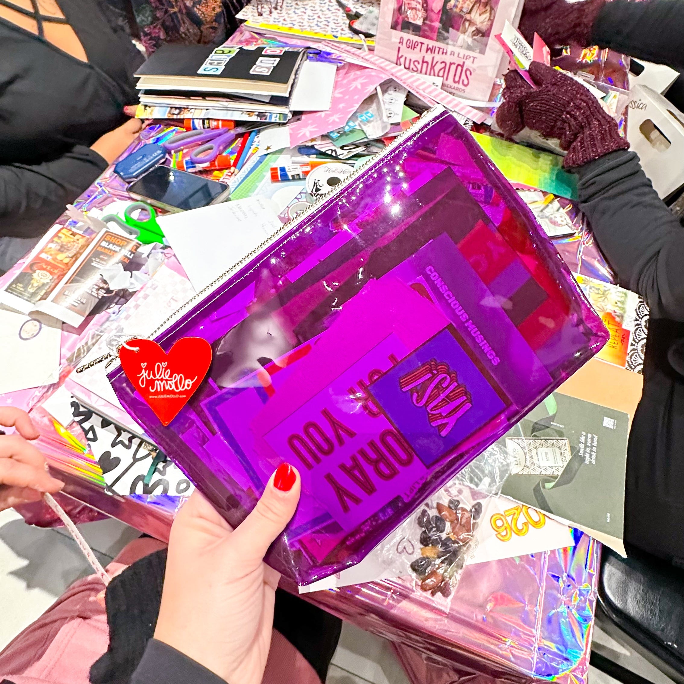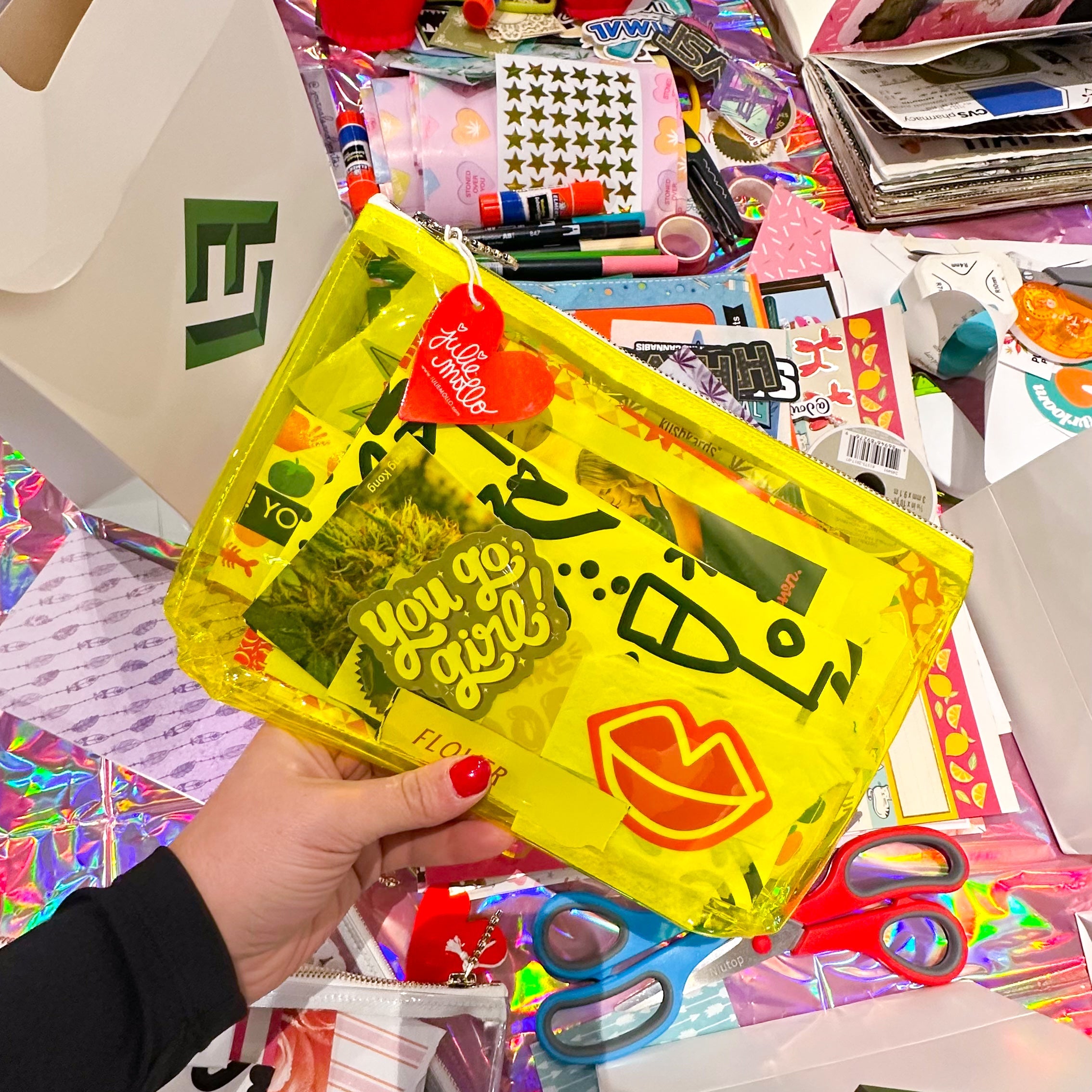 Meet the pouch made to hold your creative chaos: The Junk Collector - Clear Craft Clutch, a limited collaboration between KushKards and Julie Mollo!