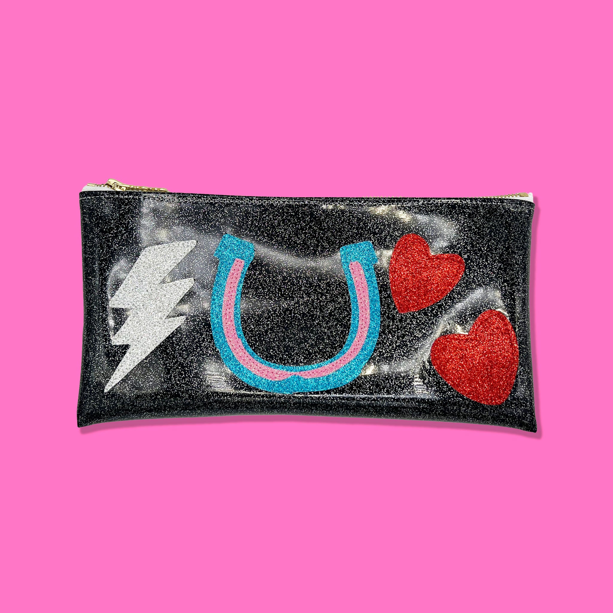 Celebrate all things retro and classic rockabilly with our Amy Winehouse Inspired Glitter Vinyl Clutch! Adorned with some of Amy Winehouse's iconic tattoos, this clutch is a perfect tribute to her legendary style and unforgettable music.