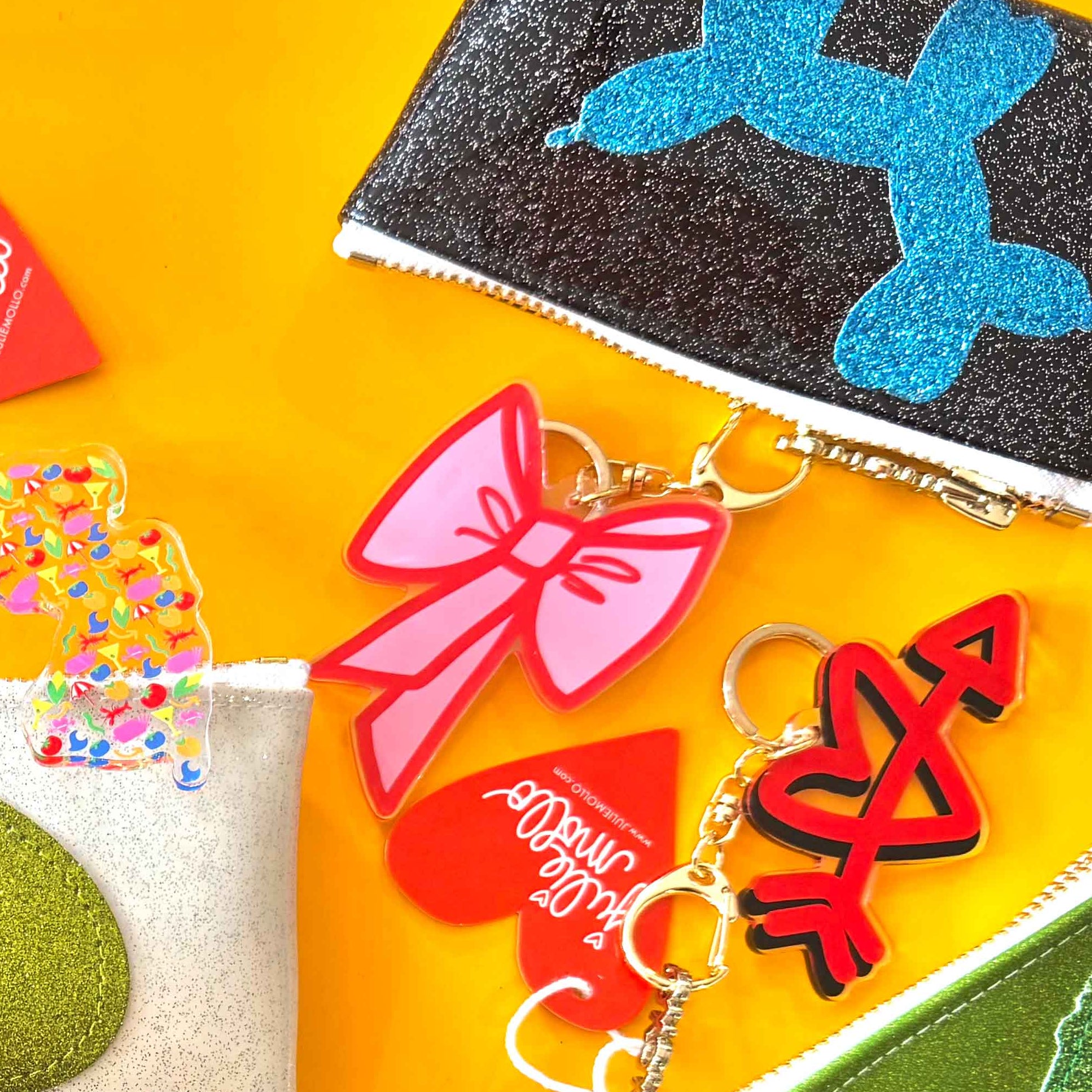 This high-gloss pink acrylic bow charm is pure happiness. Clip it on and watch your bag go from “cute” to “OMG obsessed!!!” Its shine is unreal and the vibes are ✨immaculate✨!