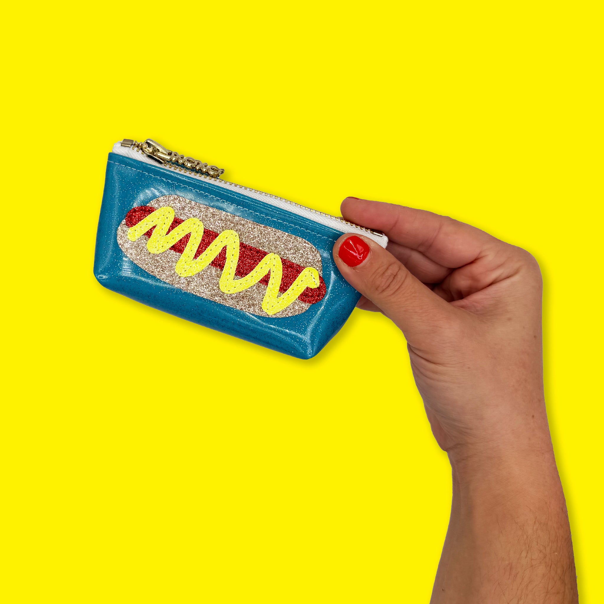 Franks a lot… this one’s a must-have! 🌭✨ Our Teeny Tiny Sparkly Hot Dog Clutch on Blue Glitter Vinyl is the cutest snack you’ll ever carry! Perfect for stashing cash, cards, or tiny treasures, this mini masterpiece is perfect for clipping your keychain onto for an instant pop of playful personality! Bold, bite-sized, and totally irresistible—hot dog, you’re gonna love it! 💙